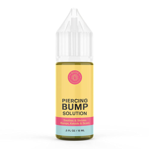 Healing & Soothing Piercing Bumps & Keloid Aftercare by Base Laboratories. Shrink, soothe, and heal piercing bumps and keloids with this all-natural, oil-based aftercare solution. Formulated with Jojoba, Grapeseed, Rose, Lavender, Turmeric, and Rosemary oils, this gentle blend visibly reduces redness, hardness, and the appearance of scars—perfect for nose, ear, belly, and other piercings. A powerful yet soothing alternative to harsh treatments like tea tree oil, it supports collagen production, locks in moisture, and promotes healing over time. Apply 2–3 times daily to new or existing bumps and scars for smoother, calmer skin. A compact, shelf-ready product that delivers real results, making it a standout addition to any retail setting—especially in piercing studios, beauty shops, and wellness aisles. Customers will love its clean ingredients, ease of use, and long-term benefits. 0.5 oz. Ships in 1-3 business days