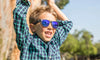 Kids deserve good sunglasses too, and that's exactly what they'll get from these polarized black and blue Kids Premiums. We've taken our popular Premiums frame style and downsized it to fit the little ones in your life. And our kids sunglasses are just as durable as other Knockarounds, in fact, they are designed to withstand any playground session.