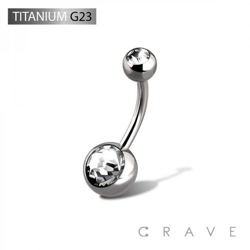 Crafted from ASTM F136 implant-grade titanium, rigorously tested for professional body piercing, ensuring maximum safety and user-friendly application. IMPLANT GRADE SOLID TITANIUM NAVEL RINGS WITH PRESS FIT CLEAR DOUBLE GEM Thickness: 14GA (1.6MM) Length: 7/16" (11MM) Ball Size: 5X8MM. Ships in 1-3 business days