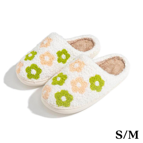 Introducing our Plush Flowers Slide On Slippers, available in US Women's sizes S/M (6-8). Made from 100% polyester with a durable rubber sole, these slippers are perfect for lounging and keeping your feet warm and comfortable. Ships in 1-3 business days