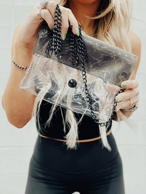 Authentic upcycled material from luxury handbags. Clear bag policy approved for any and all concerts, games, and indoor arenas. Measurements: 8.5 in x 6.7 in Luxury Heirs products have been hand-selected, one-by-one. Luxury Heirs has been granted access to United States-based suppliers after an extensive qualification process. Our products are delicately reviewed for authenticity, expertly inspected individually and are manually cleaned. Luxury Heirs are re-done by hand in small batches to ensure quality and originality.