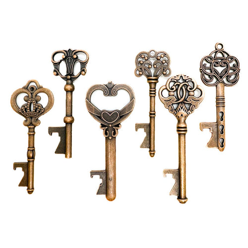 This antique looking metal key that is also a bottle opener! Perfect to hang on your key chain, so that you are always prepared. They will open any regular sized beer or soda bottle. This is perfect last minute add on item. Online orders will ship a random style, price is per key. Sizes vary slightly, but average size is 3" x 1". Ships in 1-3 business days