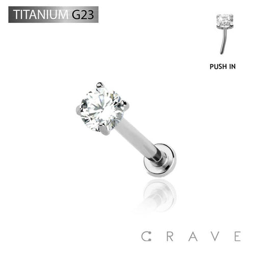 Elevate your labret piercing with this titanium prong set threadless design. Crafted from implant-grade titanium, this piece offers superior biocompatibility and durability for sensitive piercings. The secure push-in mechanism ensures your cubic zirconia stone stays firmly in place, while the prong setting maximizes light reflection for brilliant sparkle. The threadless design eliminates the need for twisting, making insertion and removal effortless. Ideal for those seeking a hypoallergenic, long-lasting jewelry option that combines comfort with sophisticated style.