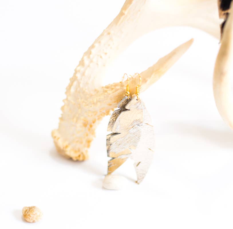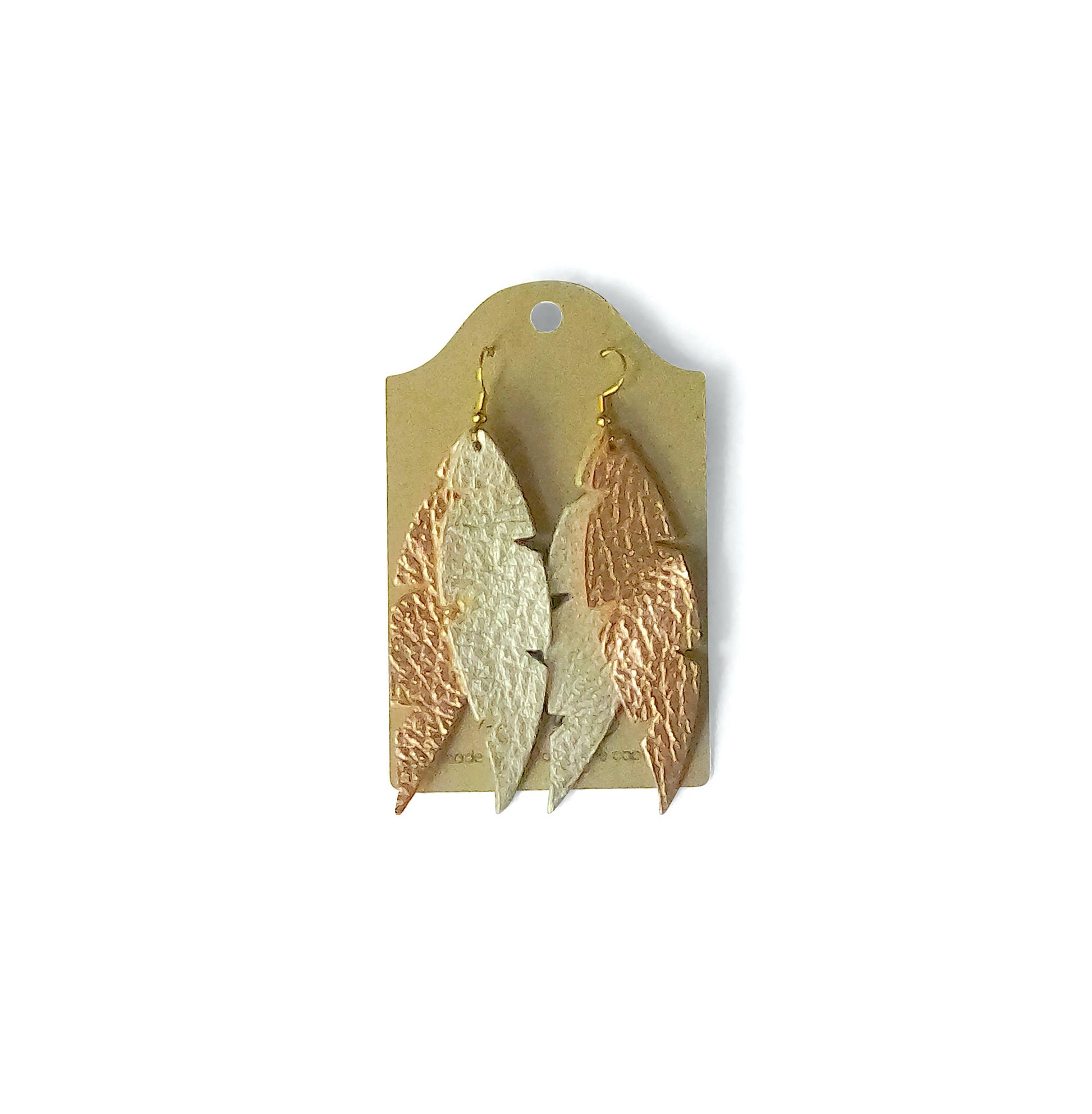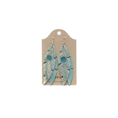 These stylish handmade genuine leather earrings from are a beautiful complement to any outfit. Add this lightweight and fashionable style to give some flair. Need some sparkle? Each earring is handmade in the USA by women that are transitioning out of difficult situations. – Genuine leather that’s lightweight and comfortable. – Fish hook ear wires with rubber stoppers. – Unique statement earring designed by Beaudin. Dimension: 1.25"wide x 3.5"long. Ships in 1-3 business days
