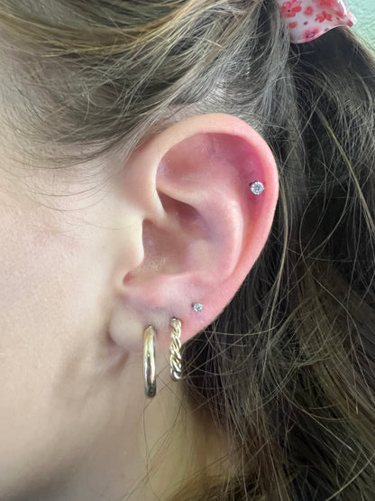 This listing is for Ear Lobe Piercing ages 4 and up. Expertly pierce both ear lobe's with this professional ear piercing service. Our skilled technicians use the latest techniques and sterile equipment to ensure a safe and precise piercing experience. Perfect for those looking to express their individual style with ear piercings. This is done with our Pro Pierce System
