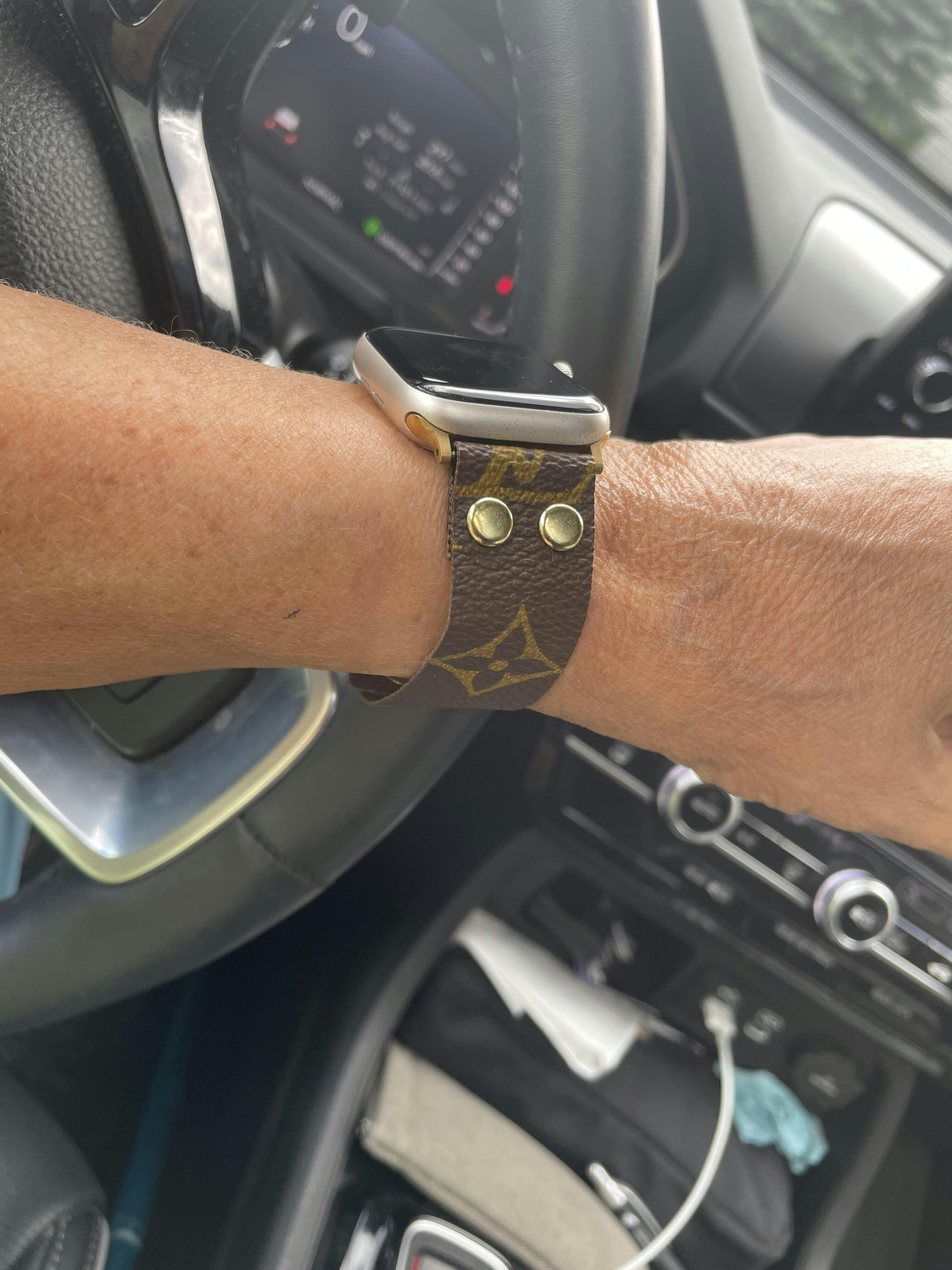 100% authentic Louis Vuitton monogram canvas repurposed into an Apple Watch Band. Double snap closure makes it easy to put on and take off. Adjusts to 3 different sizes. Layout of print of monogram and flower will vary on each band.