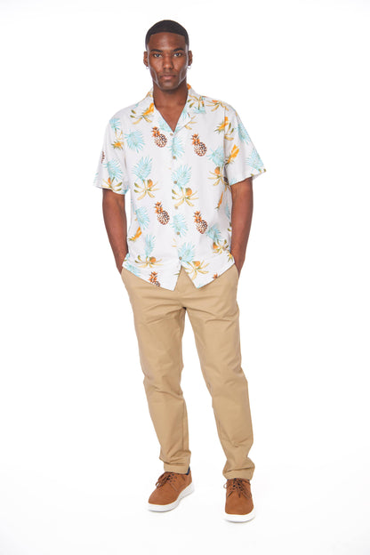 Men's Printed Woven Fun Pineapple Print SS Shirt