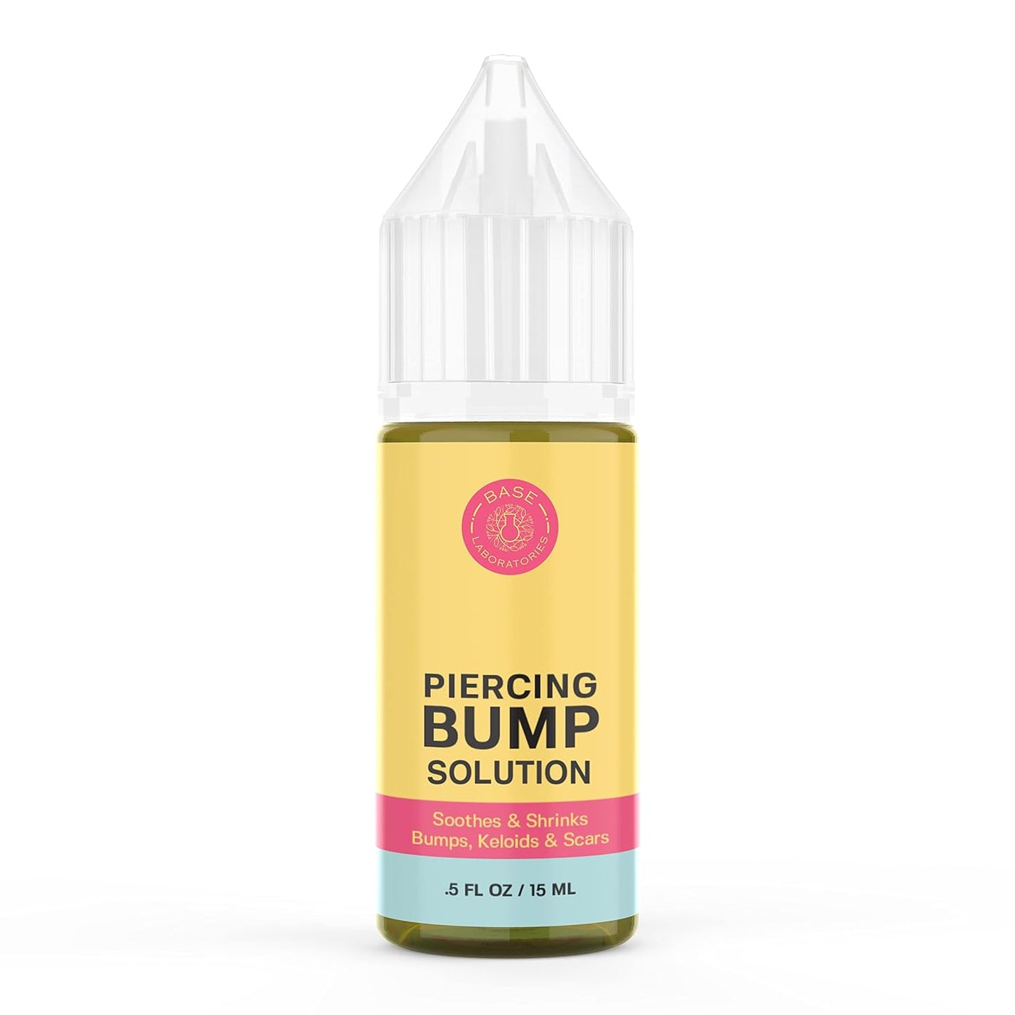Healing & Soothing Piercing Bumps & Keloid Aftercare by Base Laboratories. Shrink, soothe, and heal piercing bumps and keloids with this all-natural, oil-based aftercare solution. Formulated with Jojoba, Grapeseed, Rose, Lavender, Turmeric, and Rosemary oils, this gentle blend visibly reduces redness, hardness, and the appearance of scars—perfect for nose, ear, belly, and other piercings. A powerful yet soothing alternative to harsh treatments like tea tree oil, it supports collagen production, locks in moisture, and promotes healing over time. Apply 2–3 times daily to new or existing bumps and scars for smoother, calmer skin. A compact, shelf-ready product that delivers real results, making it a standout addition to any retail setting—especially in piercing studios, beauty shops, and wellness aisles. Customers will love its clean ingredients, ease of use, and long-term benefits. 0.5 oz. Ships in 1-3 business days