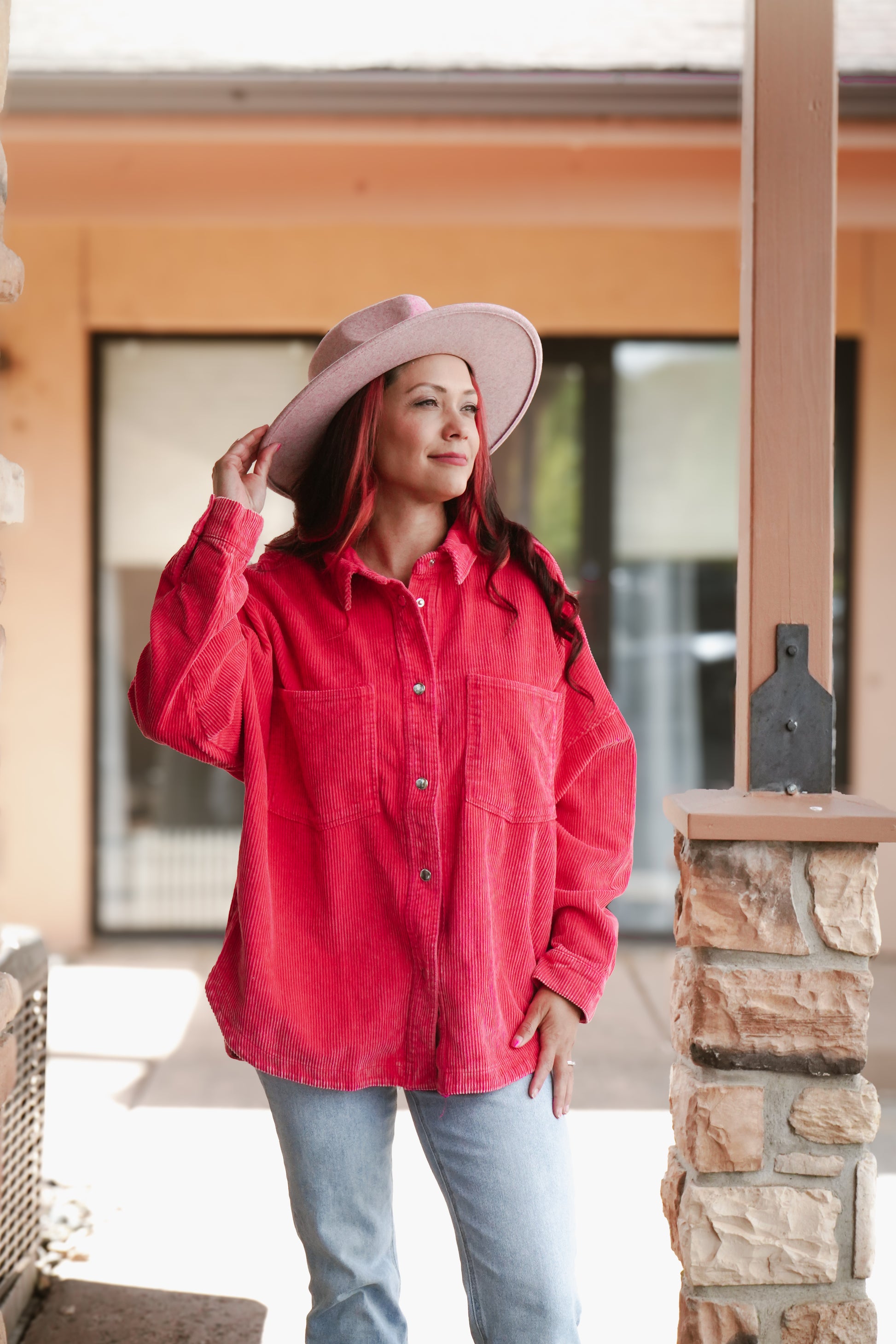 This long-sleeve washed corduroy shacket combines comfort and style with its soft fabric blend of 85% cotton and 15% spandex for added flexibility. Designed with front pockets for practicality and crafted to offer a relaxed fit, it provides versatile layering options for cool weather. Modeled at 5'8", it showcases a flattering silhouette that merges classic texture with modern wearability. Perfect for those seeking both durability and refined casual appeal. Ships in 1-3 business daysย